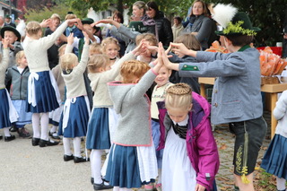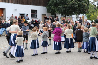 Pünktlich um 14 Uhr begann das rund einhalbstündige Konzert der Schönauer Musi mit einigen Stücken der Nachwuchskapelle „Junge Schönauer“. Zwischen den Stücken konnte Dirigent Sven Jungermann vier junge Musikanten auszeichnen: Felix und Hanna Jungermann, Thomas Gaar sowie Regina Pletzer erhielten jeweils das mit dem Leistungsabzeichen D1 mit gutem Erfolg. Nach dem die „jungen Schönauer“ den ersten Programmteil sehr zum Gefallen der anwesenden rund 200 Zuhörer gestaltet hatten, zeigte die Kinder- und Zwergerlgruppe des Trachtenvereins „Eichenlaub Schönau“ den Auftanz. Für die ganz Kleinen der Zwergerlgruppe (Kinder ab 5 Jahren), die mit einer coronabedingten Unterbrechung seit ca. einem Jahr existiert, war es der erste öffentliche Auftritt. Die Kinder hatten dabei sichtlich Freude, auch wenn nicht jeder Schritt perfekt saß.